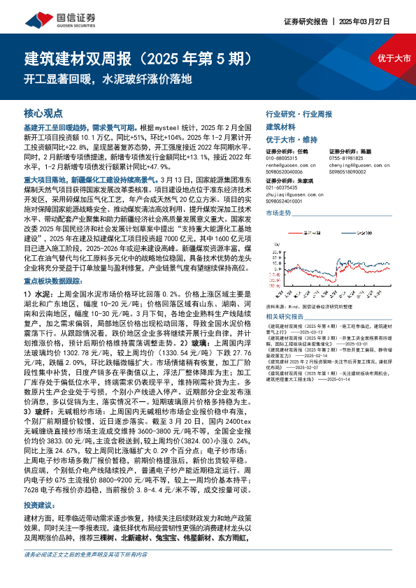 【国信证券】【20250327】20250327-国信证券-建筑建材双周报(2025年第5期):开工显著回暖,水泥玻纤涨价落地-17页