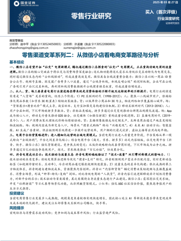 【国金证券】【20250327】零售渠道变革系列二:从微信小店看电商变革路径与分析-29页