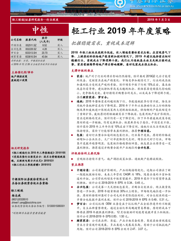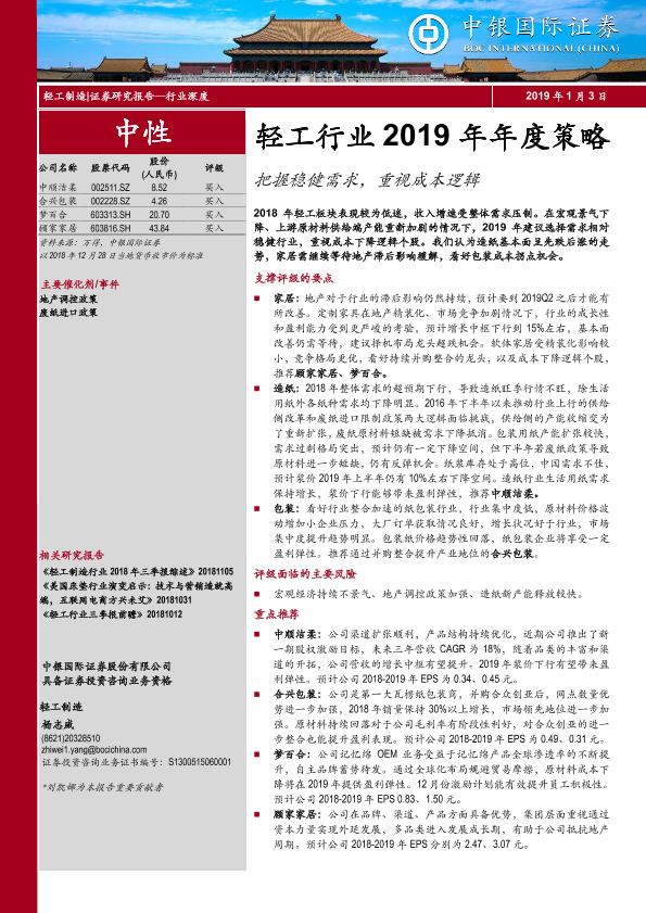 【中银证券】【20190103】轻工行业2019年年度策略:把握稳健需求,重视成本逻辑-37页