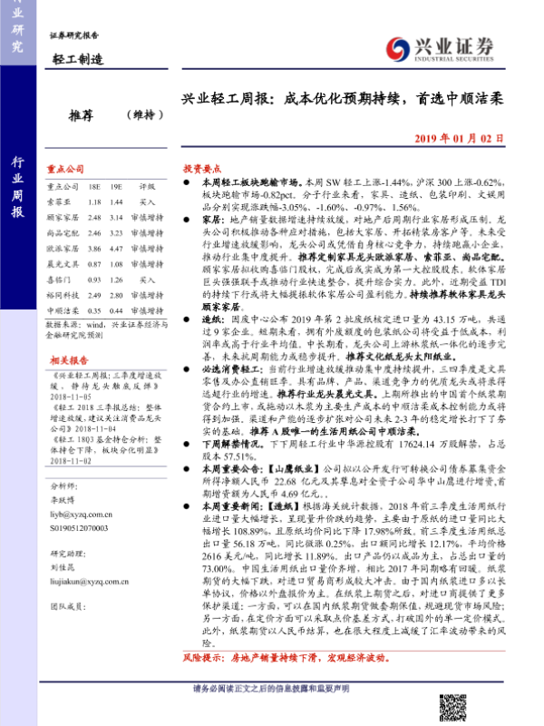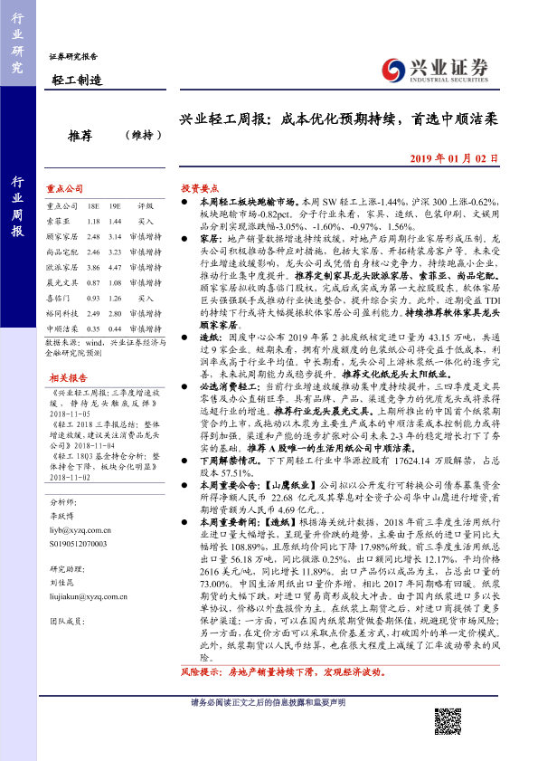 【兴业证券】【20190102】20190102-兴业证券-轻工周报:成本优化预期持续,首选中顺洁柔-23页