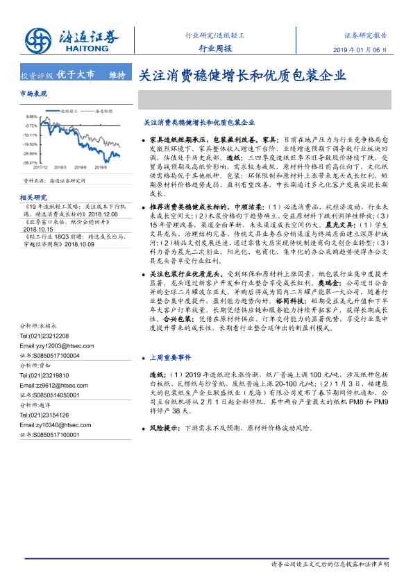 【海通证券】【20190106】20190106-海通证券-造纸轻工行业周报:关注消费稳健增长和优质包装企业-11页