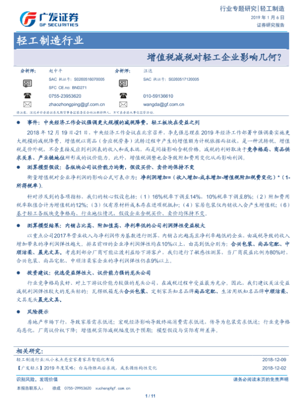 【广发证券】【20190106】增值税减税对轻工企业影响几何?-11页