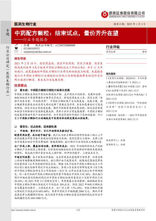 【浙商证券】【20220103】医药生物行业专题报告:中药配方颗粒,结束试点,量价齐升在望-22页