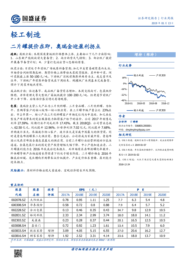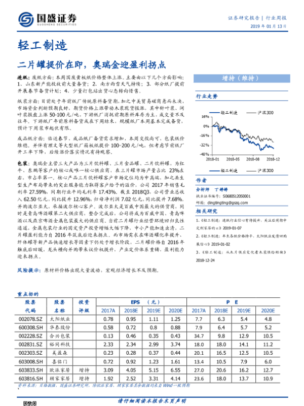 【国盛证券】【20190113】轻工制造行业周报:二片罐提价在即,奥瑞金迎盈利拐点-8页