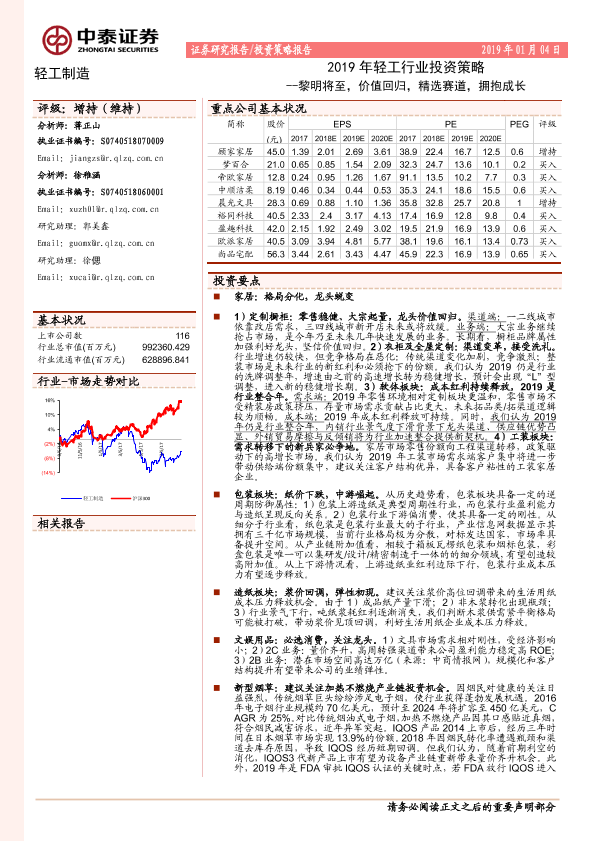 【中泰证券】【20190104】2019年轻工行业投资策略:黎明将至,价值回归,精选赛道,拥抱成长-59页