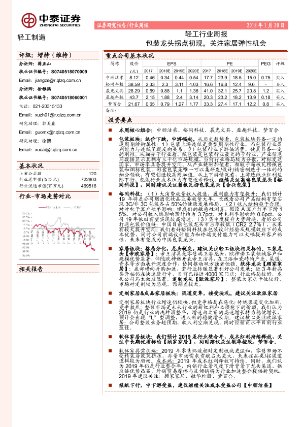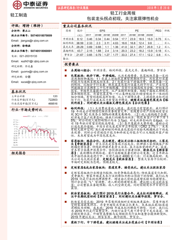 【中泰证券】【20190120】20190120-中泰证券-轻工行业周报:包装龙头拐点初现,关注家居弹性机会-15页