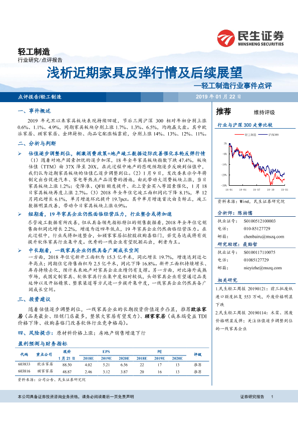 【民生证券】【20190122】20190122-民生证券-轻工制造行业事件点评:浅析近期家具反弹行情及后续展望-3页