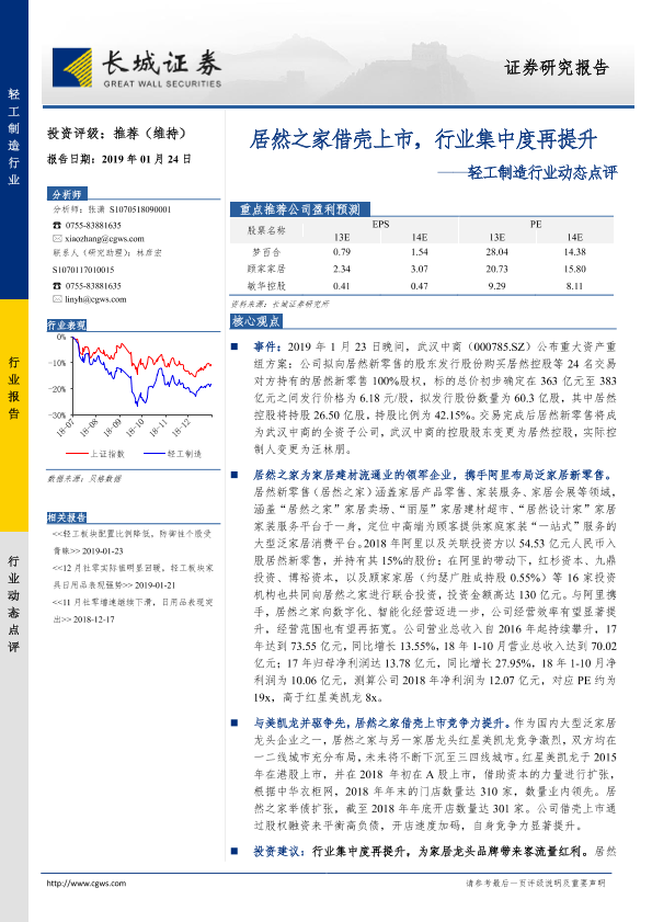 【长城证券】【20190124】轻工制造行业动态点评:居然之家借壳上市,行业集中度再提升-5页
