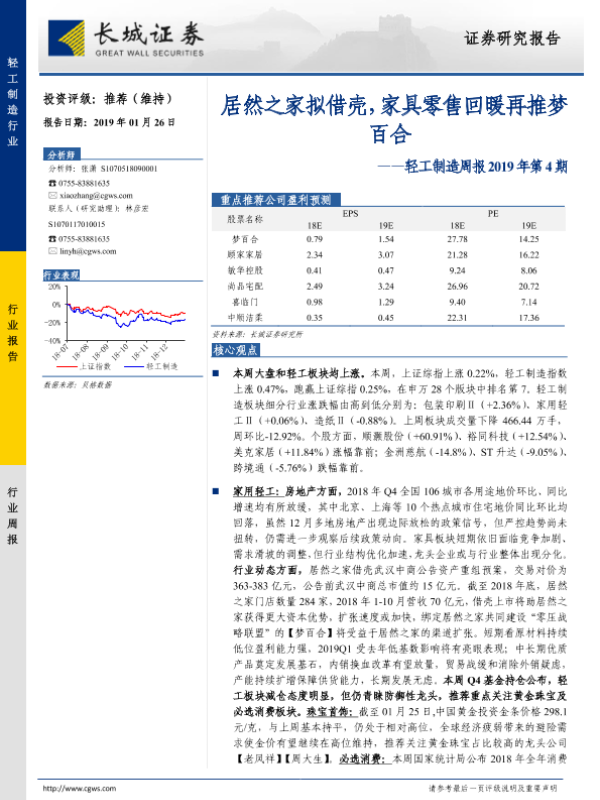 【长城证券】【20190126】轻工制造周报2019年第4期:居然之家拟借壳,家具零售回暖再推梦百合-25页