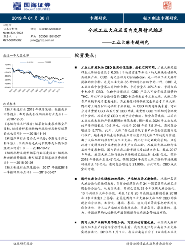 【国海证券】【20190130】全球工业大麻及国内发展情况综述-14页