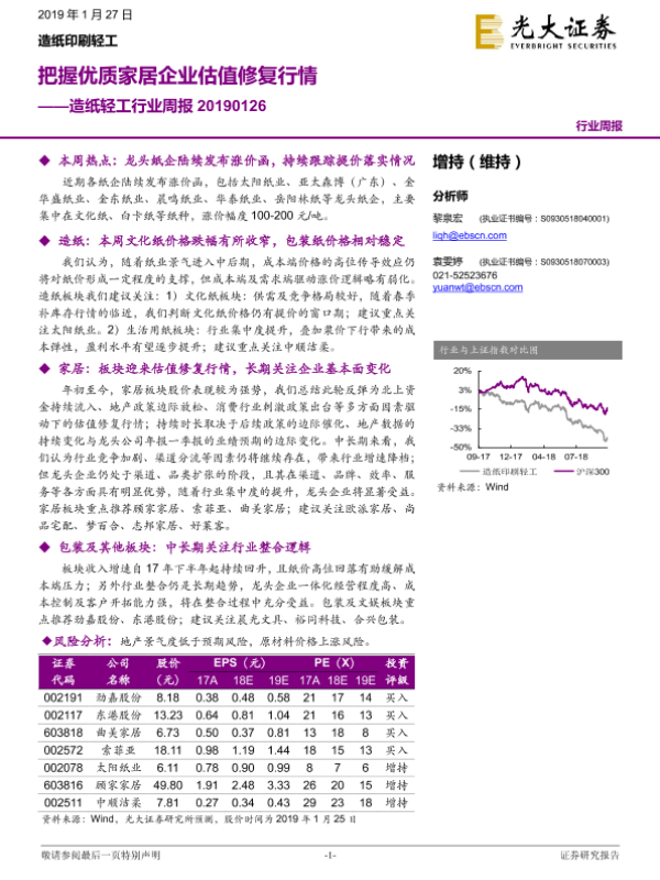 【光大证券】【20190127】20190127-光大证券-造纸轻工行业周报:把握优质家居企业估值修复行情-27页