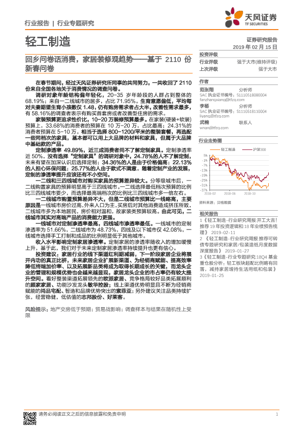 【天风证券】【20190215】轻工制造行业专题研究:基于2110份新春问卷-回乡问卷话消费,家居装修观趋势-12页