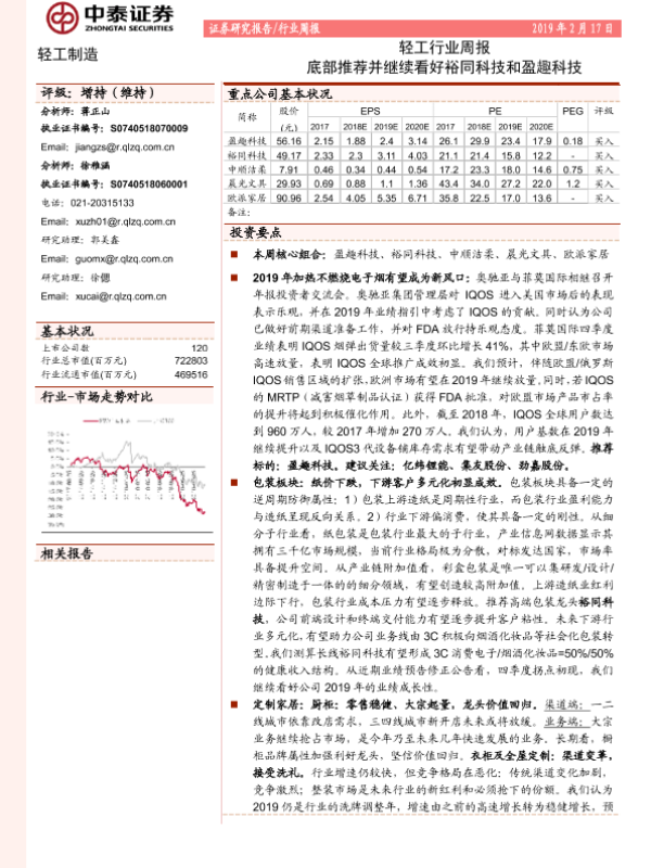 【中泰证券】【20190217】20190217-中泰证券-轻工行业周报:底部推荐并继续看好裕同科技和盈趣科技-15页