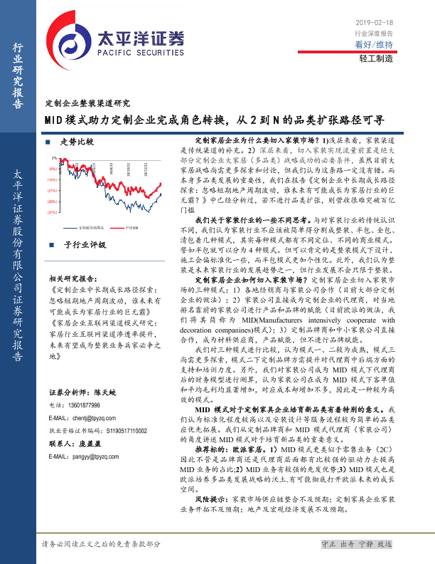 【太平洋证券】【20190218】20190218-太平洋-轻工制造行业深度报告:定制企业整装渠道研究-MID模式助力定制企业完成角色转换,从2到N的品类扩张路径可寻-26页