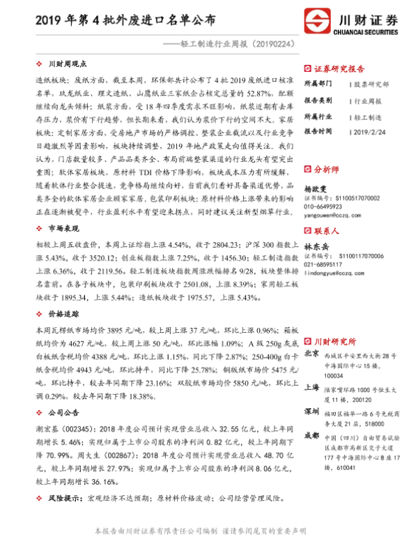 【川财证券】【20190224】20190224-川财证券-轻工制造行业周报:2019年第4批外废进口名单公布-11页