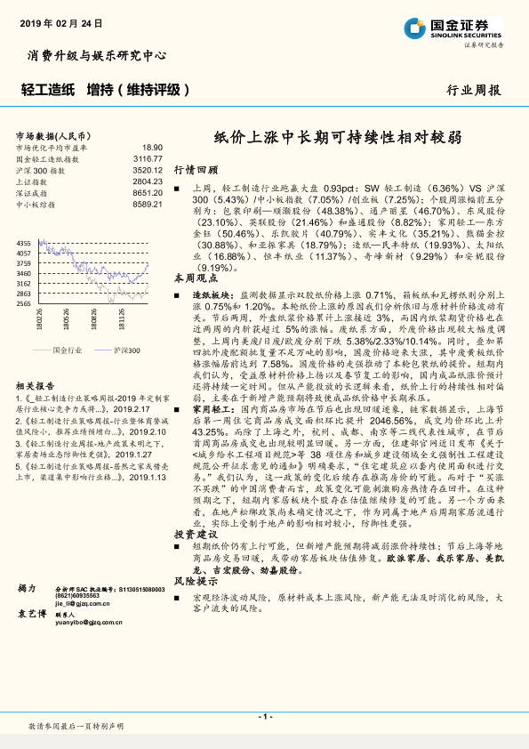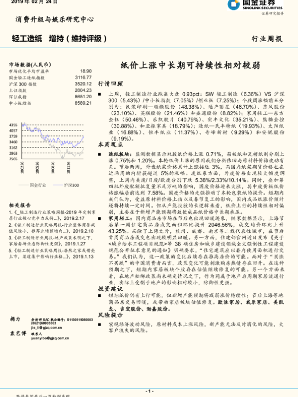 【国金证券】【20190224】20190224-国金证券-轻工造纸行业周报:纸价上涨中长期可持续性相对较弱-29页