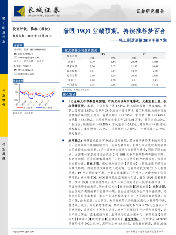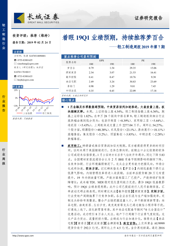 【长城证券】【20190224】轻工制造周报2019年第7期:着眼19Q1业绩预期,持续推荐梦百合-24页