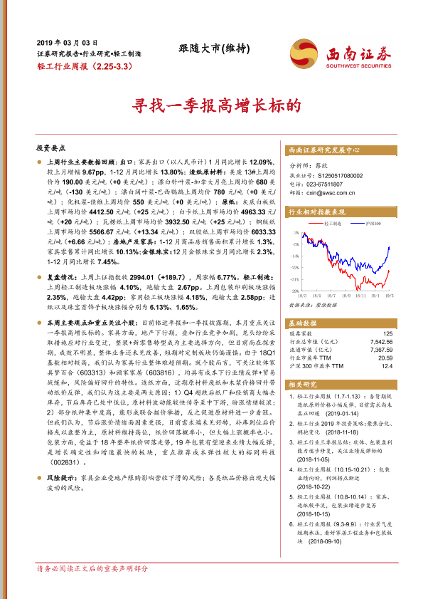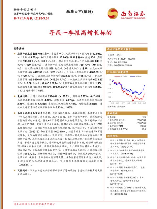 【西南证券】【20190303】20190303-西南证券-轻工制造周报:寻找一季报高增长标的-9页