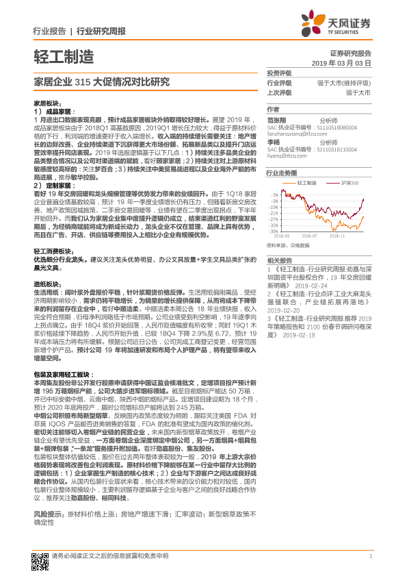 【天风证券】【20190303】轻工制造行业研究周报:家居企业315大促情况对比研究-28页