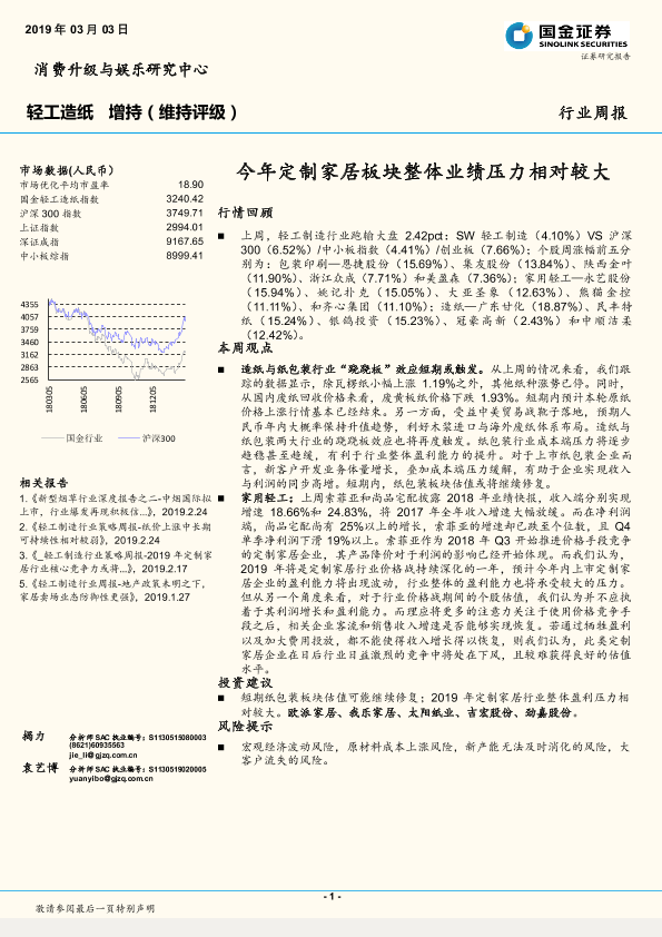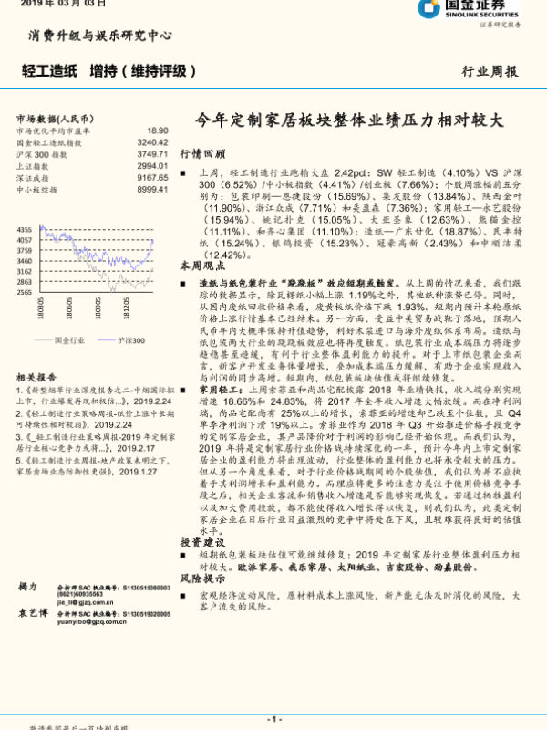 【国金证券】【20190303】20190303-国金证券-轻工造纸行业周报:今年定制家居板块整体业绩压力相对较大-29页