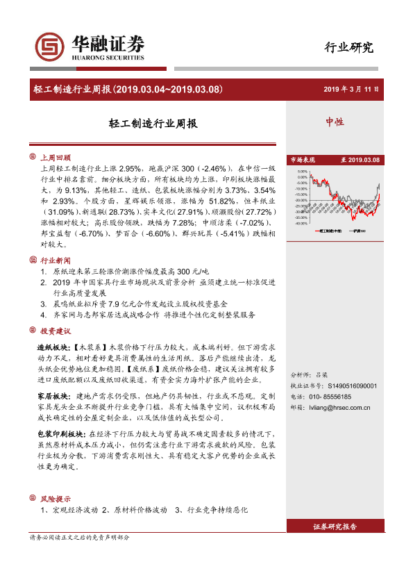 【华融证券】【20190311】轻工制造行业周报(2019.03.04~2019.03.08)-13页