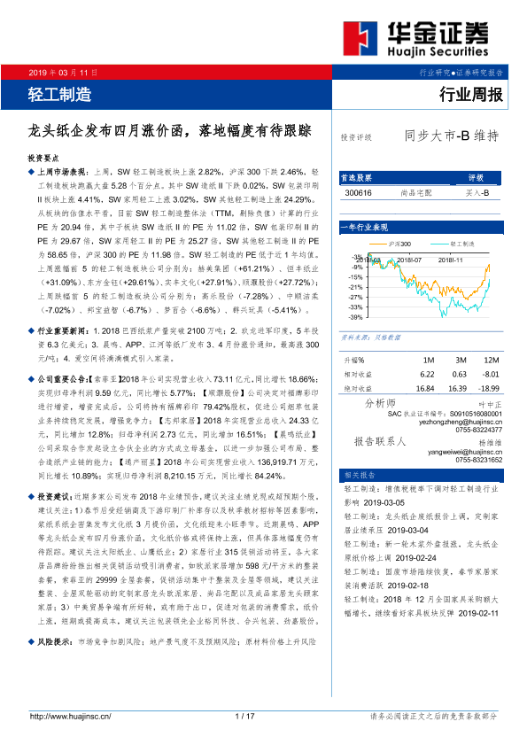 【华金证券】【20190311】20190311-华金证券-轻工制造行业周报:龙头纸企发布四月涨价函,落地幅度有待跟踪-17页