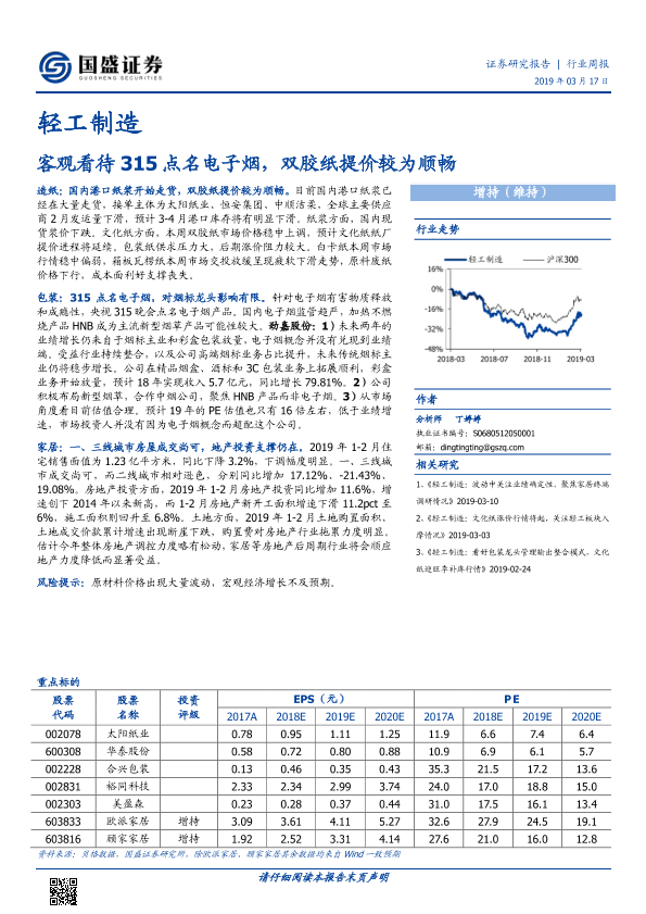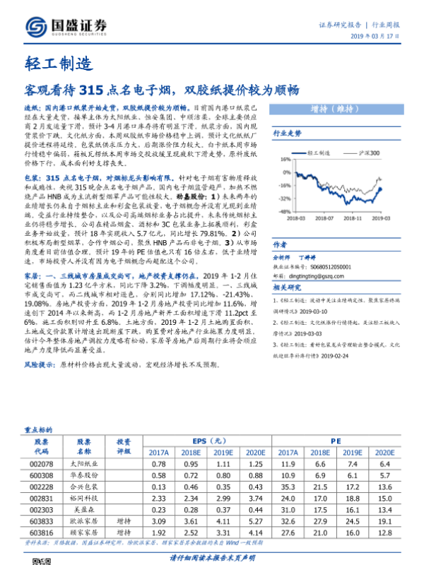 【国盛证券】【20190317】20190317-国盛证券-轻工制造行业周报:客观看待315点名电子烟,双胶纸提价较为顺畅-10页