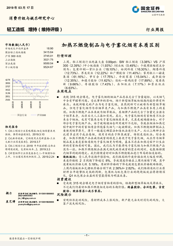 【国金证券】【20190317】20190317-国金证券-轻工造纸行业周报:加热不燃烧制品与电子雾化烟有本质区别-28页