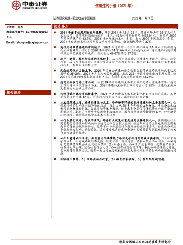 【中泰证券】【20220103】固定收益专题报告:信用违约手册(2021年)-36页