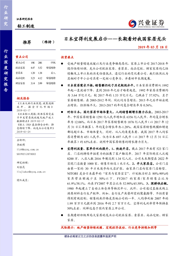 【兴业证券】【20190318】20190318-兴业证券-轻工制造行业深度研究报告:日本宜得利发展启示——长期看好我国家居龙头-34页