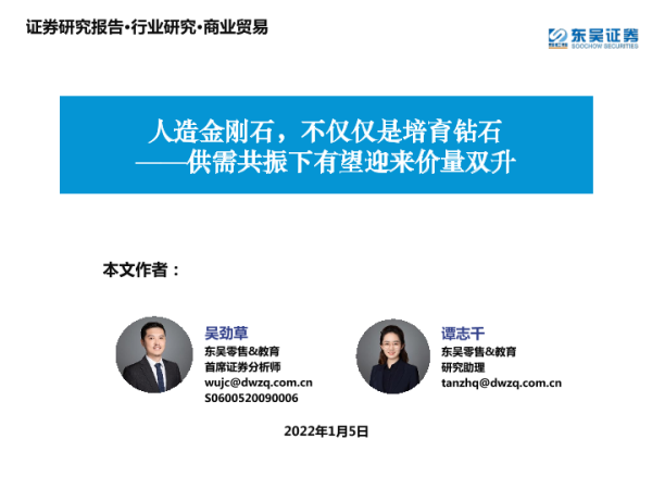 【东吴证券】【20220105】商业贸易行业:人造金刚石,不仅仅是培育钻石,供需共振下有望迎来价量双升-36页