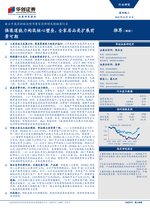 【华创证券】【20190325】由公牛集团招股说明书看家具照明及转换器行业:强渠道能力构筑核心壁垒,全家居品类扩展前景可期-21页