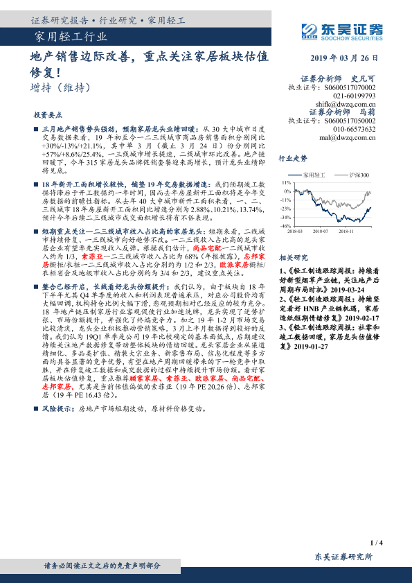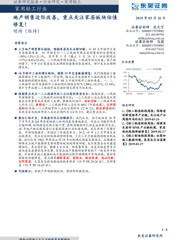 【东吴证券】【20190326】家用轻工行业:地产销售边际改善,重点关注家居板块估值修复!-4页