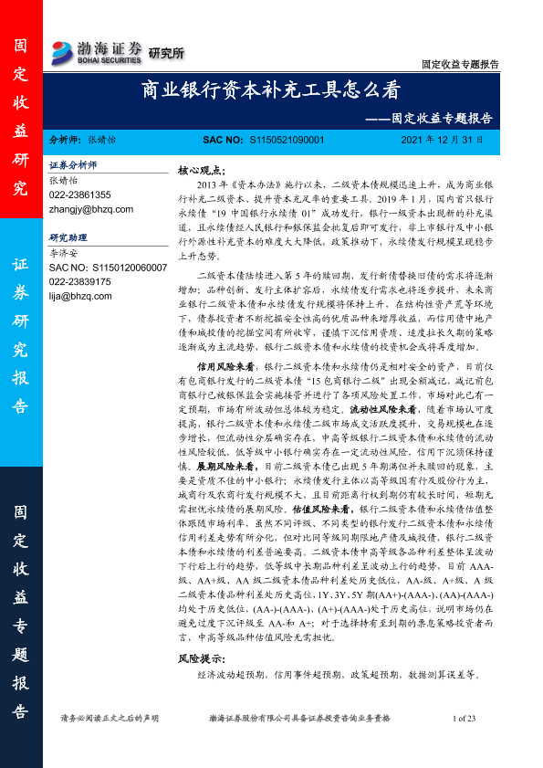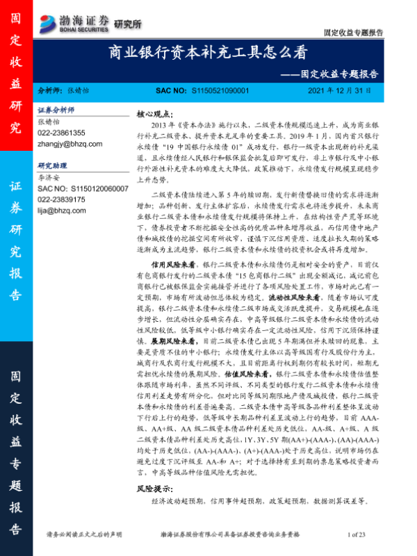 【渤海证券】【20211231】固定收益专题报告:商业银行资本补充工具怎么看-23页