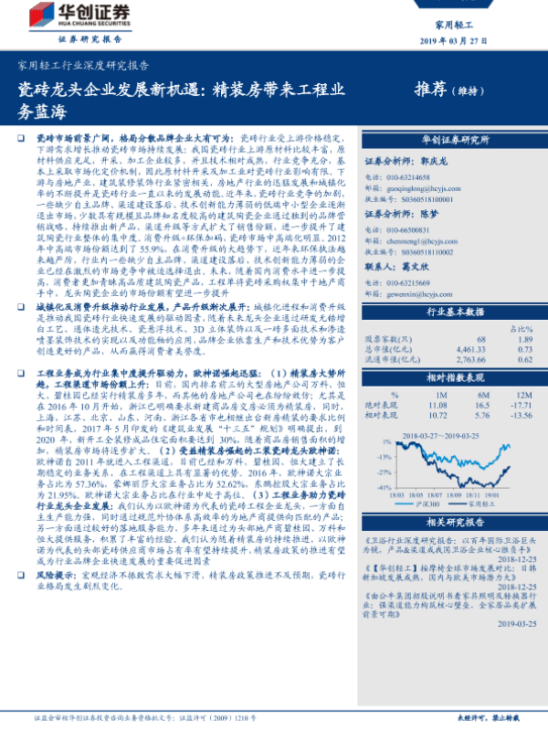 【华创证券】【20190327】20190327-华创证券-家用轻工行业深度研究报告:瓷砖龙头企业发展新机遇:精装房带来工程业务蓝海-20页