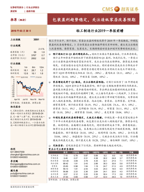 包装 家居 盈利预期 轻工制造 造纸