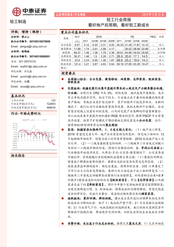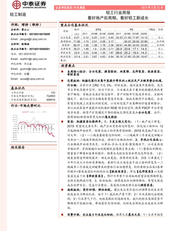 【中泰证券】【20190331】20190331-中泰证券-轻工行业周报:看好地产后周期,看好轻工新成长-15页