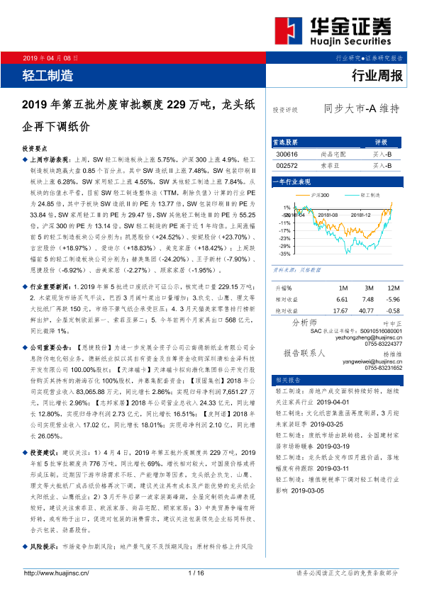 【华金证券】【20190408】2019年第五批外废审批额度229万吨,龙头纸企再下调纸价-16页