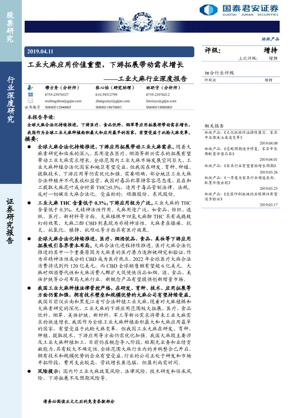 【国泰君安证券】【20190411】工业大麻应用价值重塑,下游拓展带动需求增长-56页