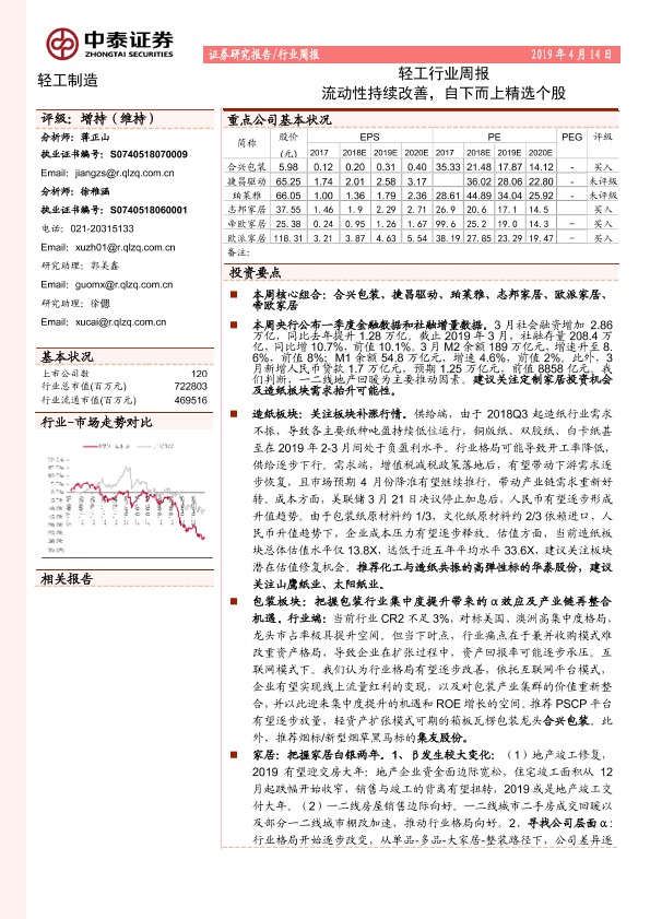 【中泰证券】【20190414】20190414-中泰证券-轻工行业周报:流动性持续改善,自下而上精选个股-15页