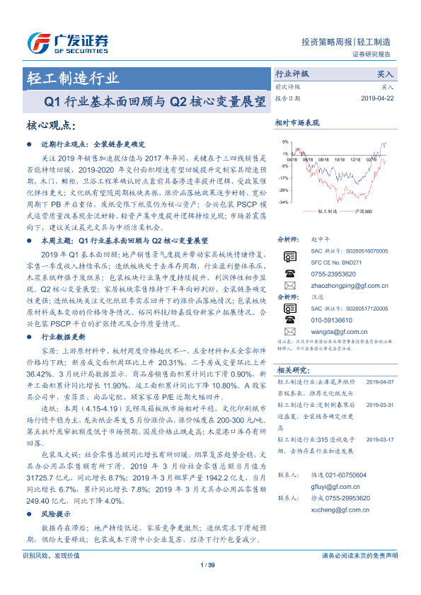 【广发证券】【20190422】轻工制造行业:Q1行业基本面回顾与Q2核心变量展望-39页