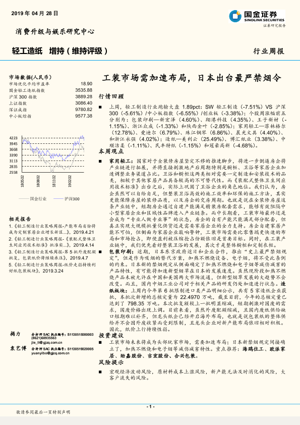 【国金证券】【20190428】20190428-国金证券-轻工造纸行业周报:工装市场需加速布局,日本出台最严禁烟令-25页