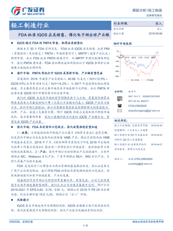 【广发证券】【20190506】FDA批准IQOS在美销售,催化电子烟全球产业链-5页