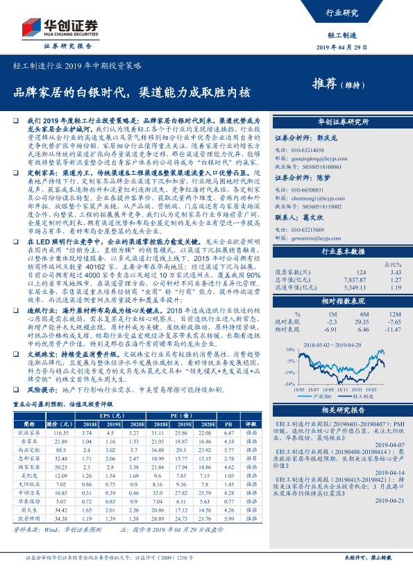 【华创证券】【20190429】轻工制造行业2019年中期投资策略:品牌家居的白银时代,渠道能力成取胜内核-53页