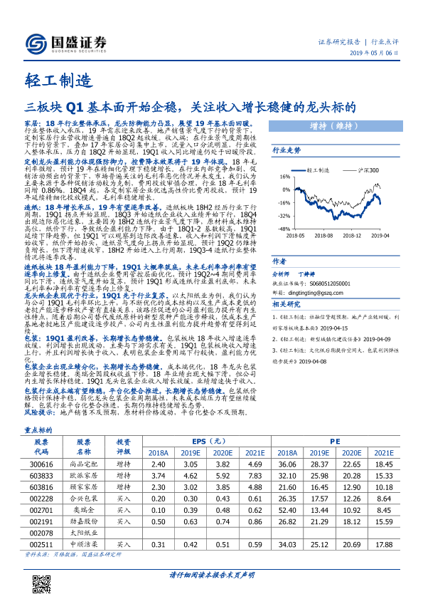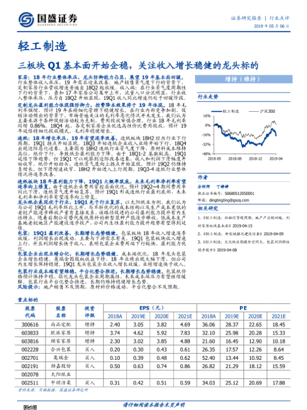 【国盛证券】【20190506】轻工制造:三板块Q1基本面开始企稳,关注收入增长稳健的龙头标的-19页