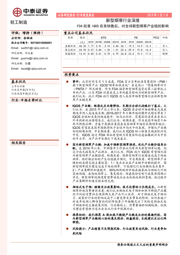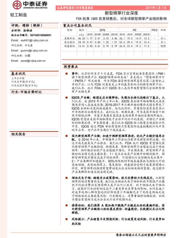 【中泰证券】【20190505】FDA批准IQOS在美销售后,对全球新型烟草产业链的影响-21页