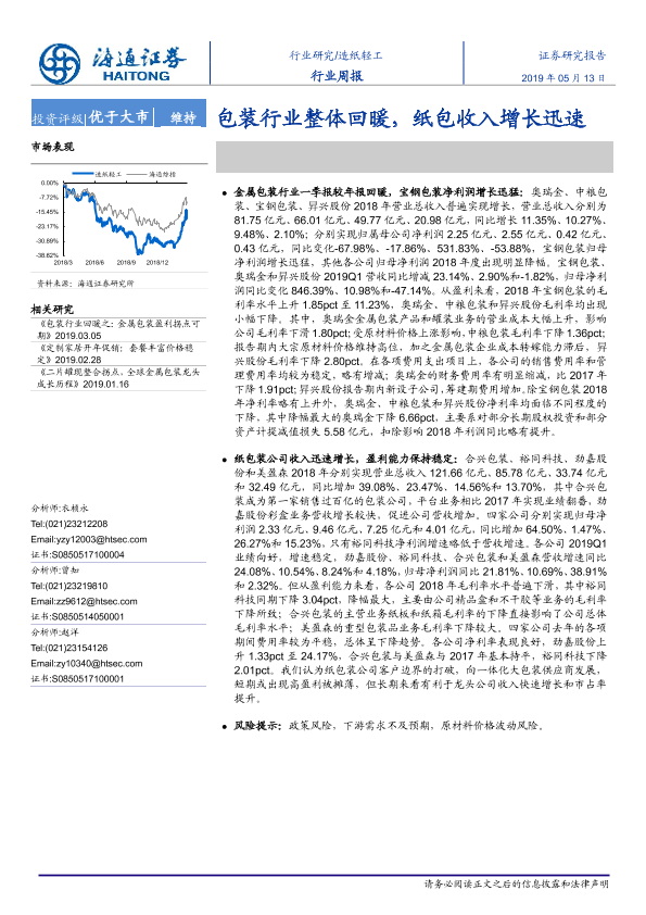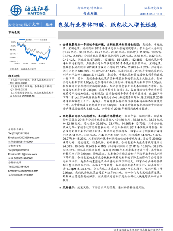 【海通证券】【20190513】20190513-海通证券-造纸轻工行业周报:包装行业整体回暖,纸包收入增长迅速-6页