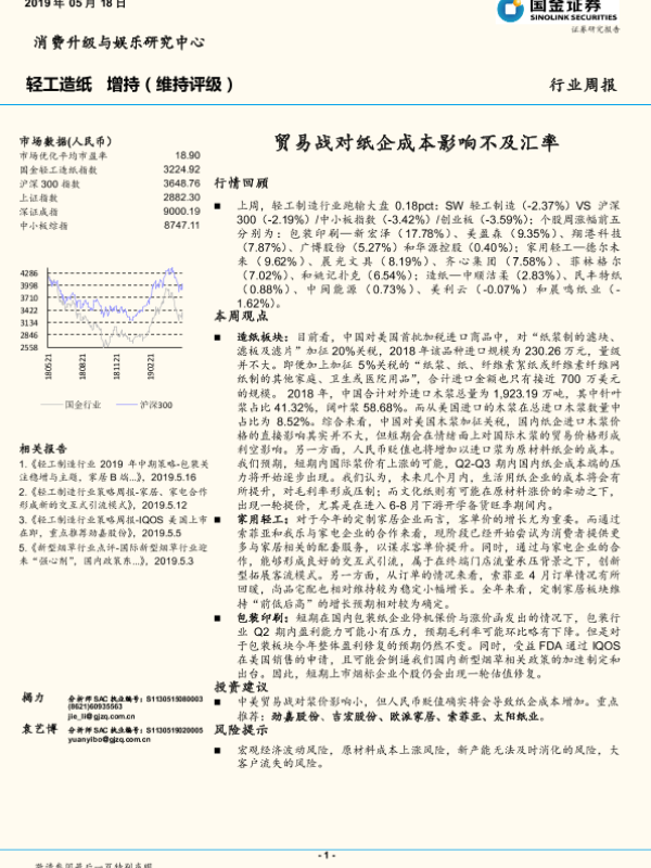 【国金证券】【20190518】20190518-国金证券-轻工造纸行业周报:贸易战对纸企成本影响不及汇率-26页