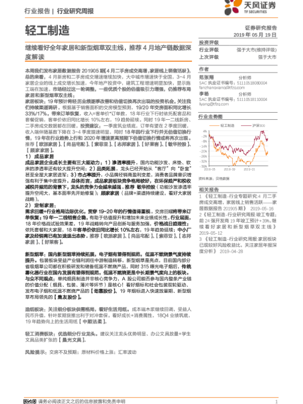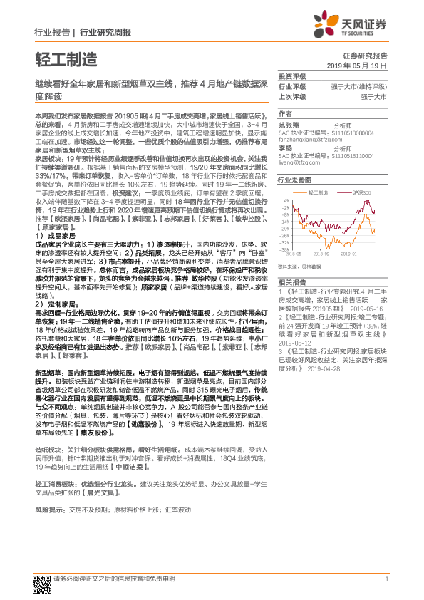 【天风证券】【20190519】20190519-天风证券-轻工制造行业研究周报:继续看好全年家居和新型烟草双主线,推荐4月地产链数据深度解读-20页