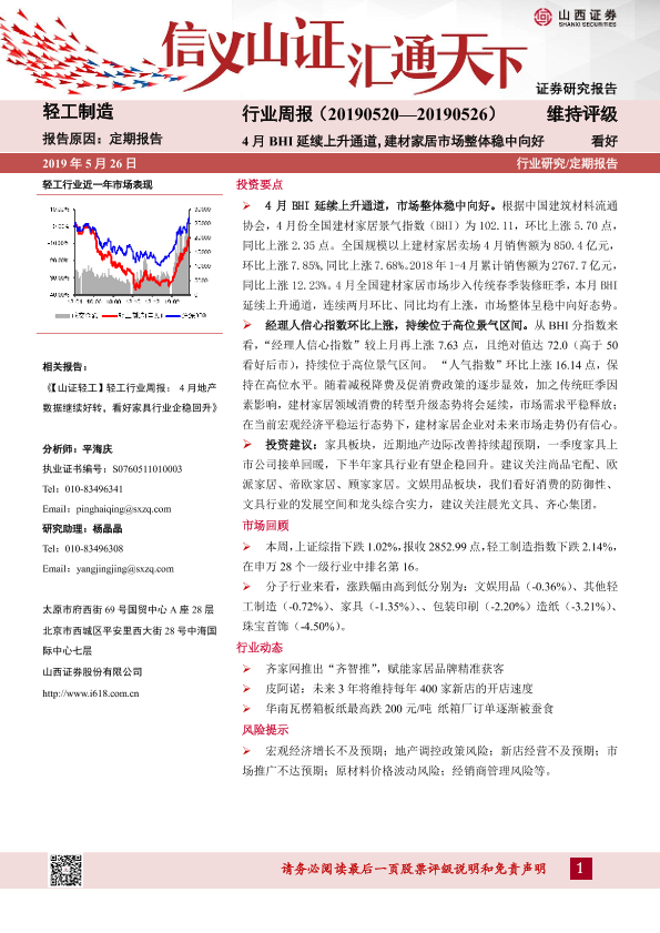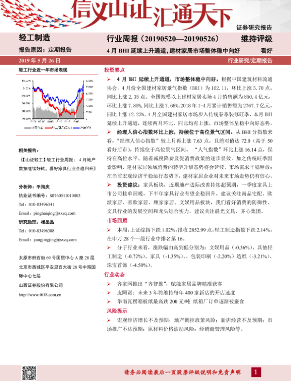 【山西证券】【20190526】20190526-山西证券-轻工制造行业周报:4月BHI延续上升通道,建材家居市场整体稳中向好-12页